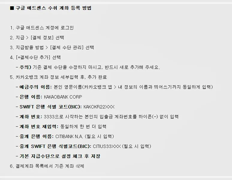 구글 애드센스 은행 계좌 등록 방법, 카카오뱅크 후기